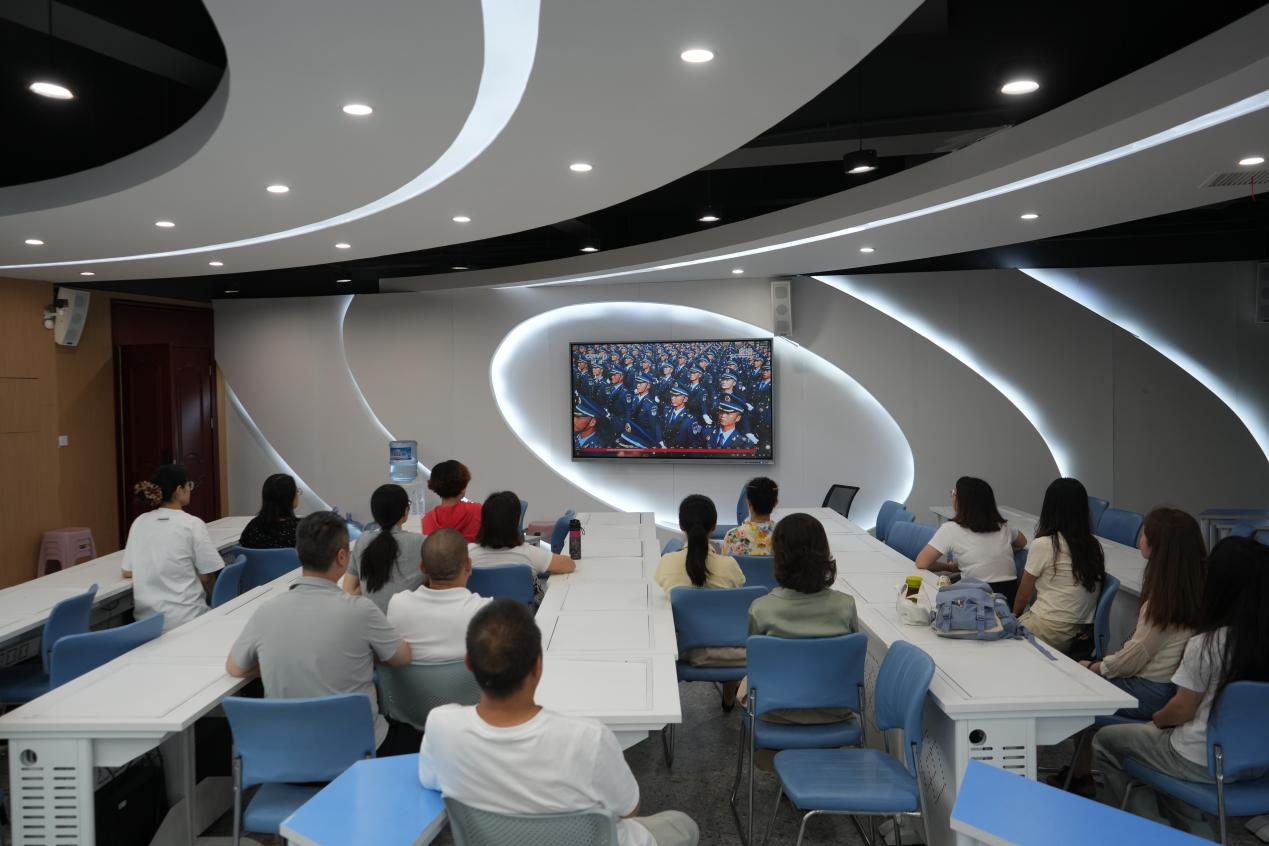 全体教职工整齐就座,目光如炬,凝神聆听习近平总书记发表的重要讲话,认真观看受阅部队的威武雄姿。铿锵有力的步伐踏响时代的强音,英姿飒爽的军容展现大国的威严;一张张坚毅的面孔写满忠诚,一声声豪迈的誓言响彻云霄。这一刻,荣耀与感动交汇,信念与使命同在,那威武的方队,那铿锵的步伐,激发的是奋斗热情,振奋的是民族精神。
