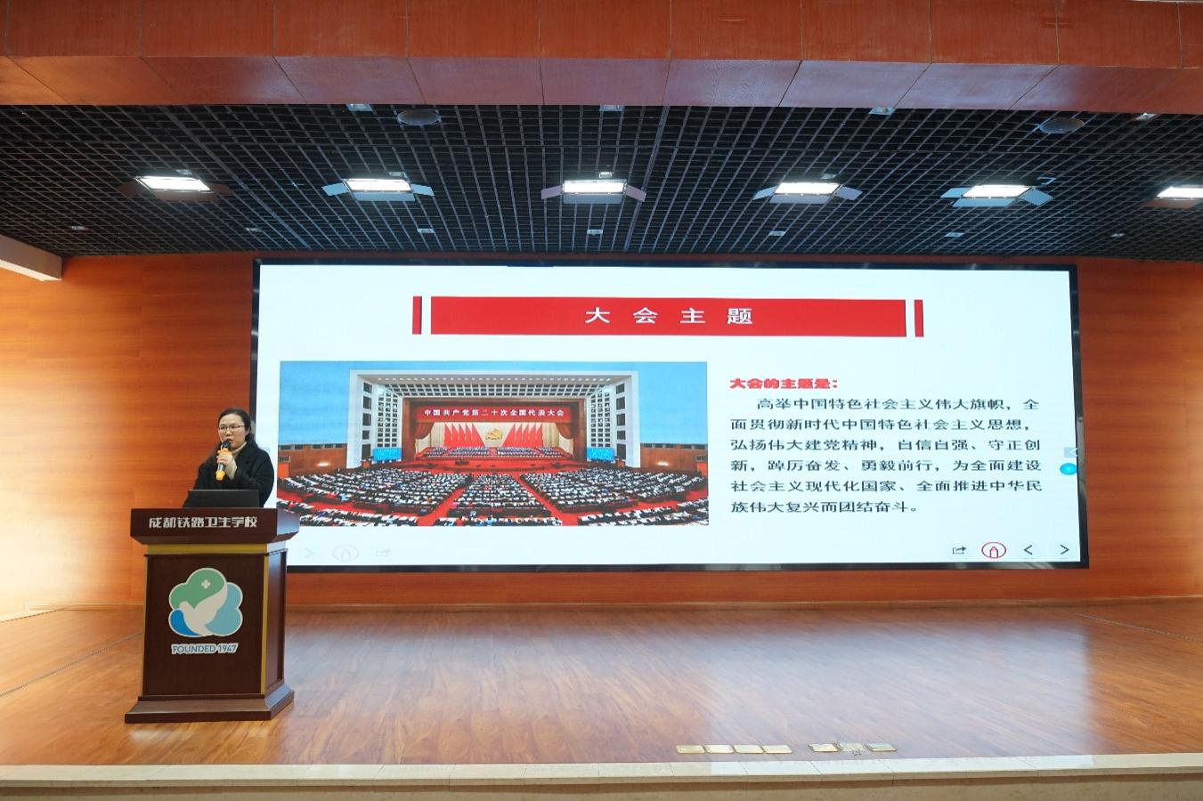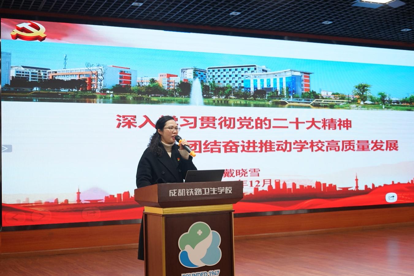 为全面准确领会党的二十大精神,强化党的二十大精神武装头脑、指导实践、推动工作的实践意义,按照学校党委学习宣传贯彻党的二十大精神方案部署,12月8日15时,学校党委书记戴晓雪同志在科技信息楼6楼学术报告厅围绕“深入学习贯彻党的二十大精神,团结奋进推动学校高质量发展”主题,从“全面深刻领会党的二十大精神”“立足学校实际深入贯彻党的二十大精神”两个方面,为全体教职工讲授专题党课。