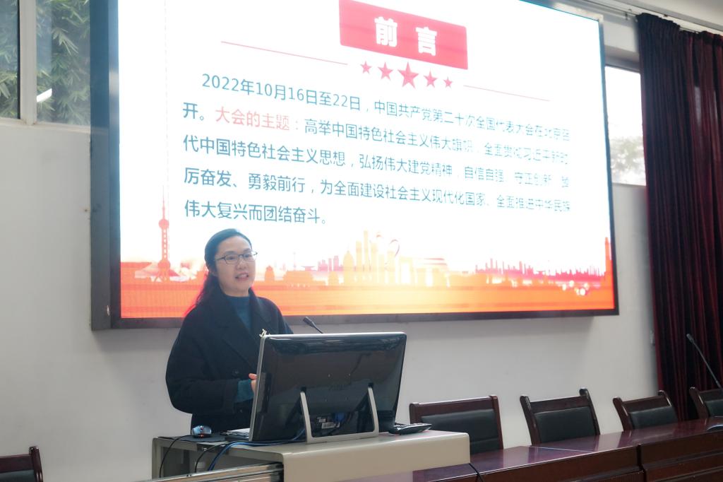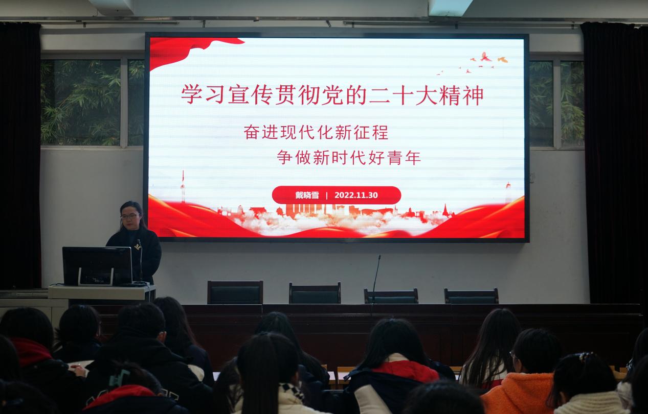 为深入学习贯彻党的二十大精神,推动二十大精神进教材、进课堂、进头脑,提高青年学生的思想政治素养,2022年11月30日下午,学校党委书记戴晓雪同志以“奋进现代化新征程 争做新时代好青年”为题,在学校行政楼101为95名业余党校学员上了一堂生动的党课。