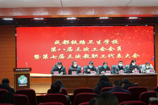 2022年12月30日,成都铁路卫生学校第八届三次工会会议暨第七届三次教职工代表大会在庄严的《国歌》声中拉开序幕。全校50名职工代表和7名列席代表出席会议。