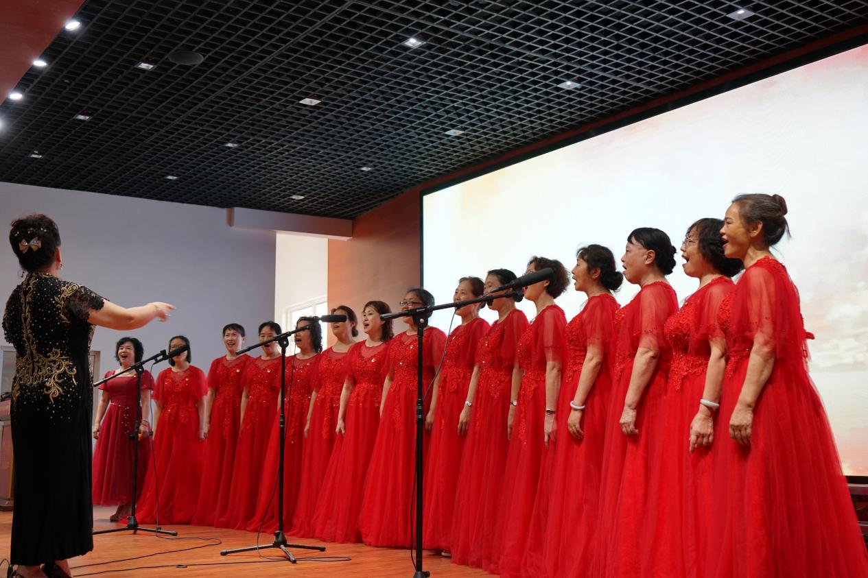 师生通过一首首耳熟能详的红歌,让大家重温了中国共产党带领全国各族人民奋力夺取革命胜利的光辉历史,场下观众用心聆听、掌声雷动,挥舞着手中的红旗和党旗一起吟唱,现场汇成一片团结奋进、歌声嘹亮的红色海洋。