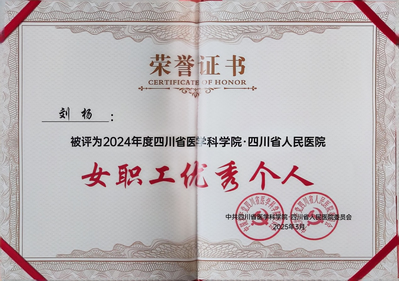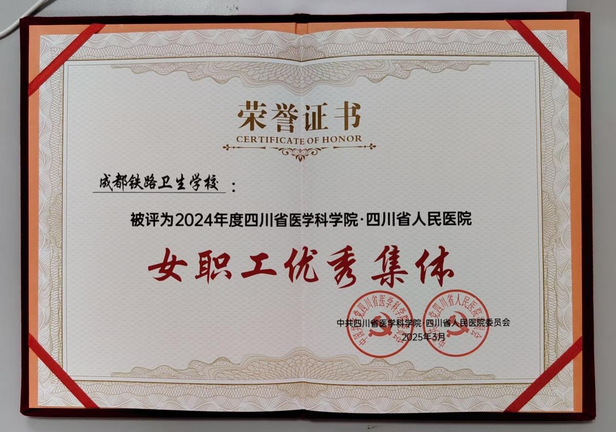 2025年3月,成都铁路卫生学校被四川省医学科学院·四川省人民医院评为2024年度“女职工优秀集体”,学校刘杨老师被评为“女职工优秀个人”。