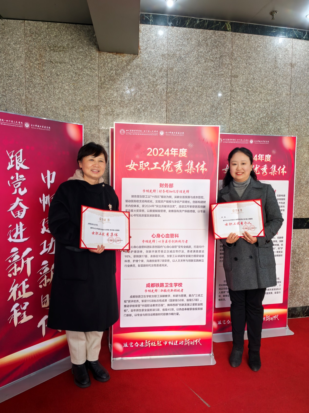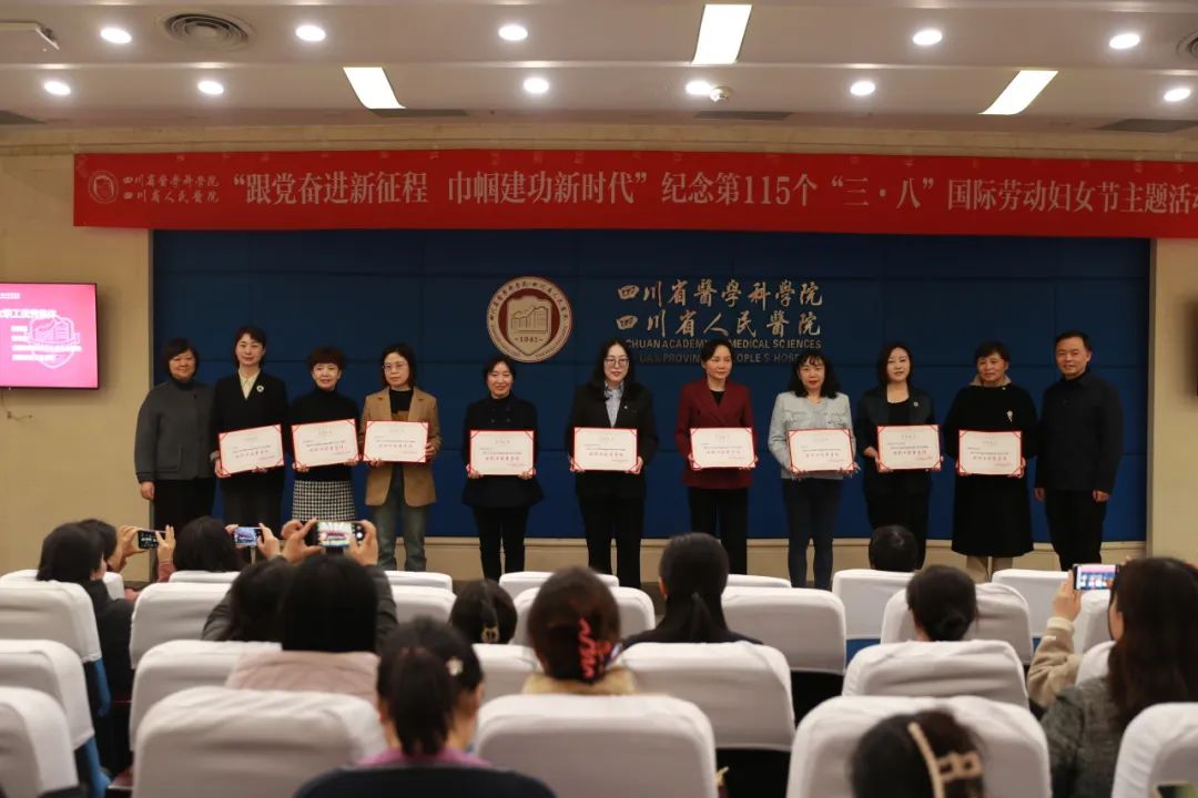为充分发挥先进典型的示范引领作用,激励广大女职工在工作中展现新作为、创造新业绩,四川省医学科学院·四川省人民医院开展“跟党奋进新征程 巾帼建功新时代”纪念“三八”国际劳动妇女节主题活动。通过基层推荐、组织审核等程序,从医疗、教学、科研及管理领域,选拔表彰了9个女职工优秀集体和9名女职工优秀个人。