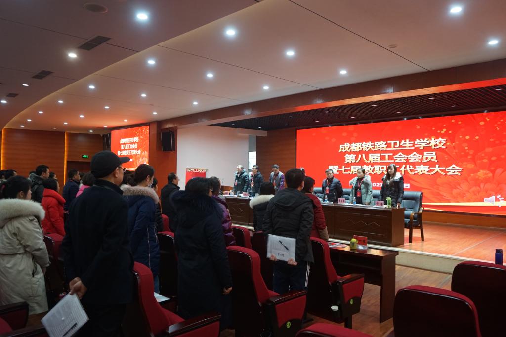 成都铁路卫生学校第七届工会委员会和第六届教职工代表大会任期届满,经过2个月的筹备,于2021年1月6日在学校科技信息楼6楼多功能厅召开成都铁路卫生学校第八届工会会员暨第七届教职工代表大会,圆满完成了学校工会换届选举工作。会议有职工代表49人(1人公差1人病假)和列席代表9人参会。